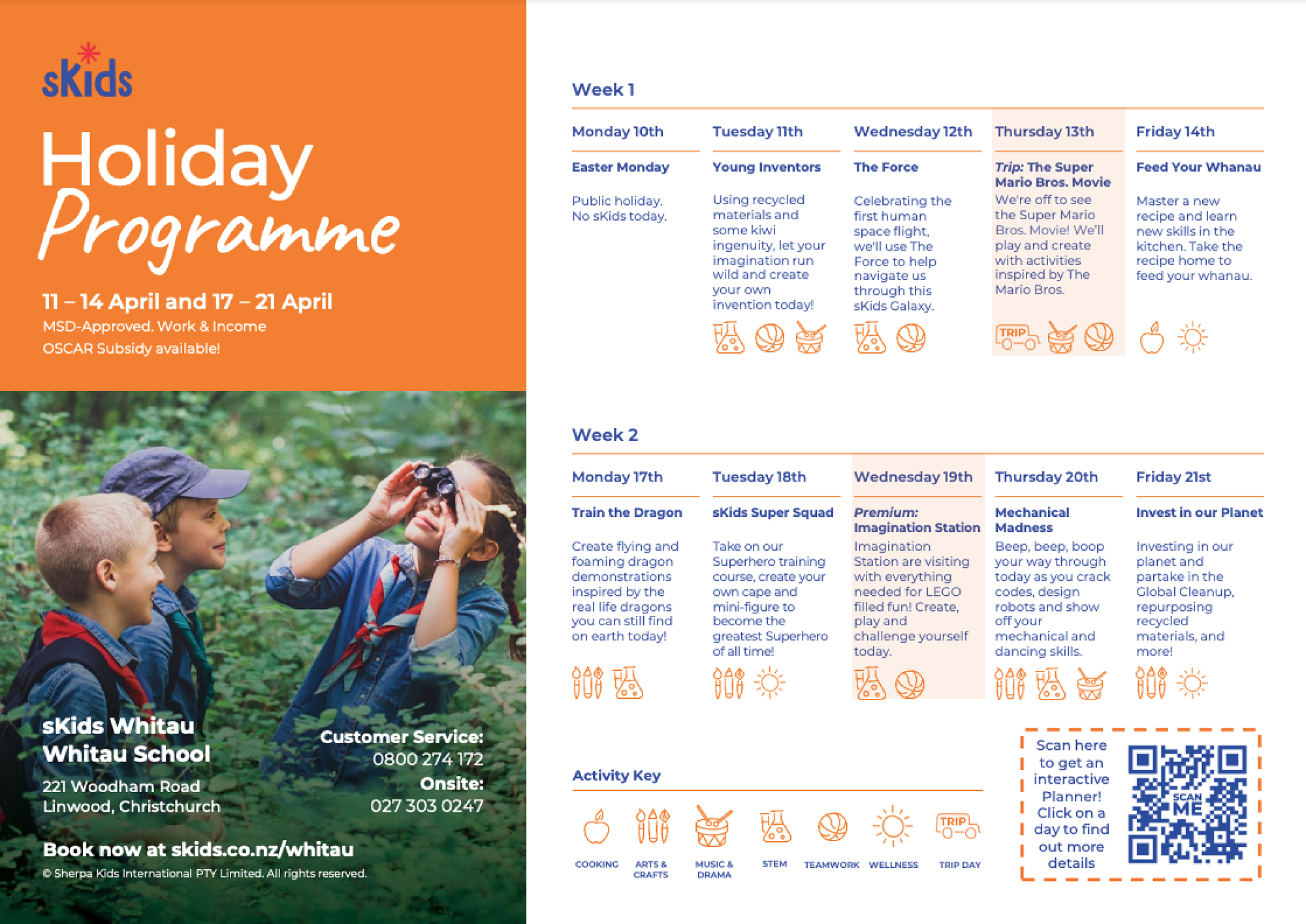 ‘Adventure awaits these April School Holidays! It’s time for us to take your kids on a journey of discovery, creativity, and fun! Each day will be filled with action planned activities and games that will be sure to keep them entertained all day long. Whether their adventure lies in the great outdoors, the futuristic world, or the land of imagination, we’ll have something for everyone. Join us at sKids this holiday and let the adventure begin! Check out our detailed Holiday Programme schedule or pop over to the sKids room to have a chat to our staff’