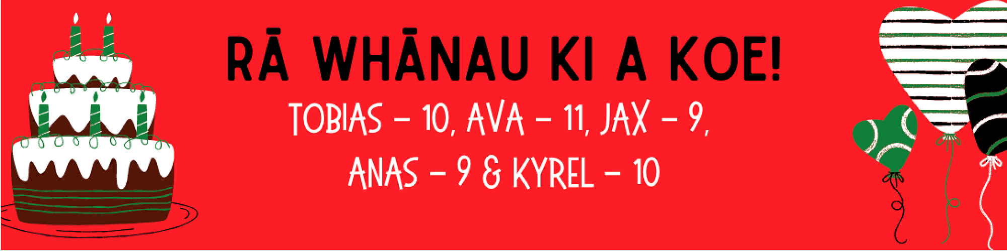 Ra Whānau ngā Tamariki - Happy Birthday to these Students