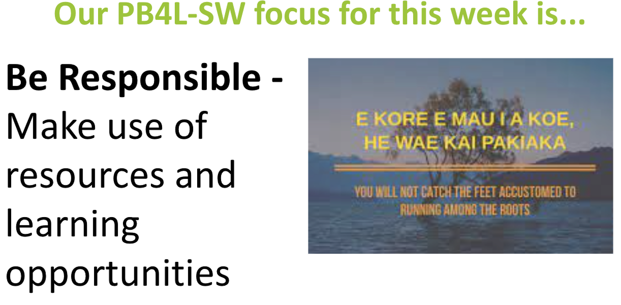Read about our weekly PB4L-SW focus and how this looks at your whare.