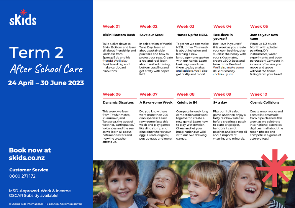 To assist families, we have provided information on our website about the OSCAR Subsidy, including a simple calculator to help determine eligibility. Try it out yourself on our website: www.sKids.co.nz/OSCAR