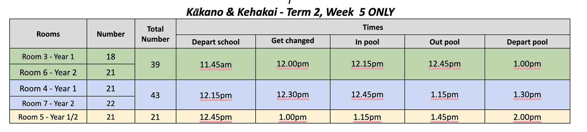 All Kākano and Kehakai children (Rooms 3 -7) need their togs at school in week 5.