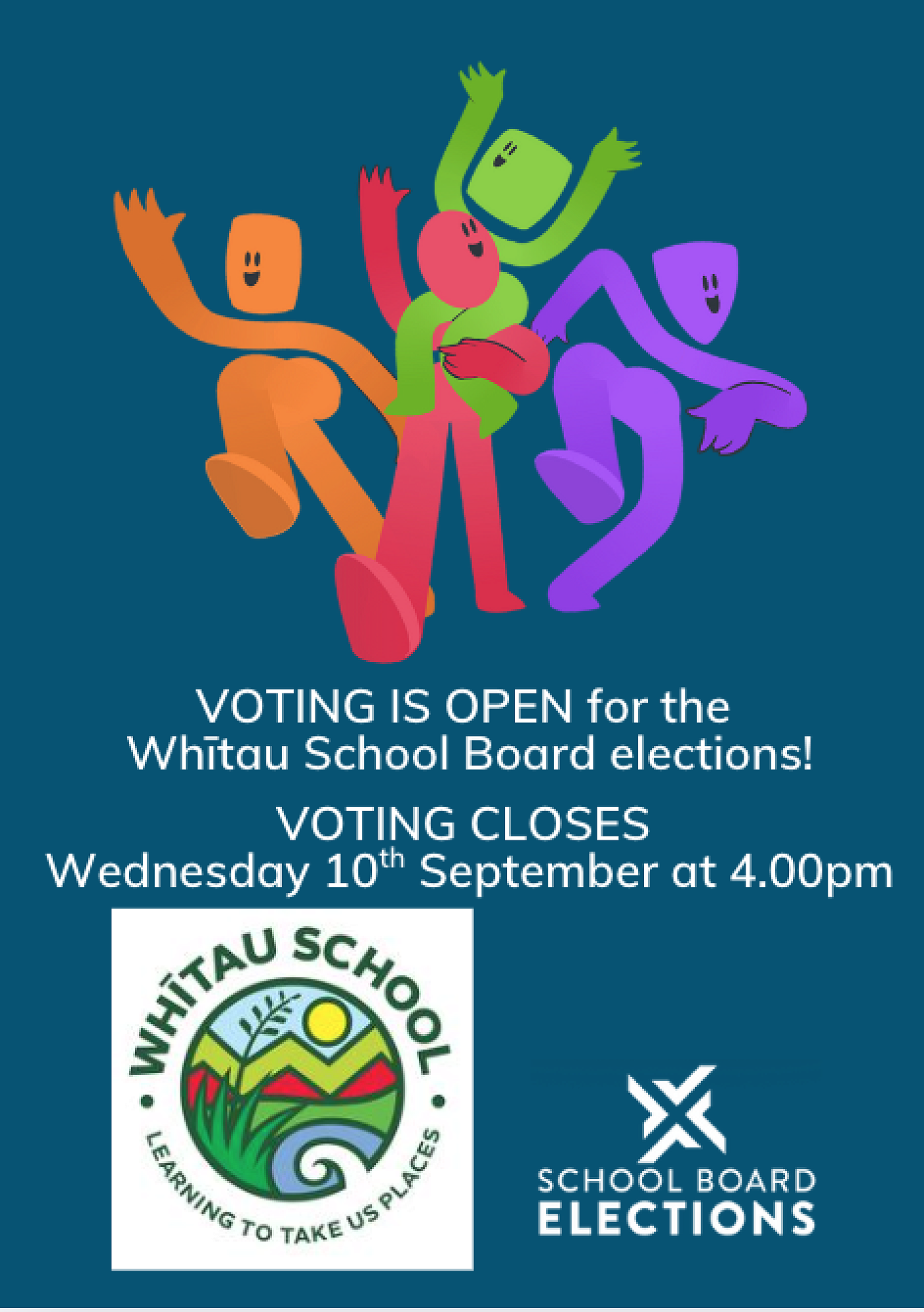 Nominations closed last Wednesday for the NZ School Board elections and now it is time for all parents to vote. I am delighted that we have such a great interest in parents wanting to be elected to become a parent representative on the Whītau School Board. We have an awesome representation from our diverse cultural community who are interested in making a difference at the governance level for all students at Whītau School.
