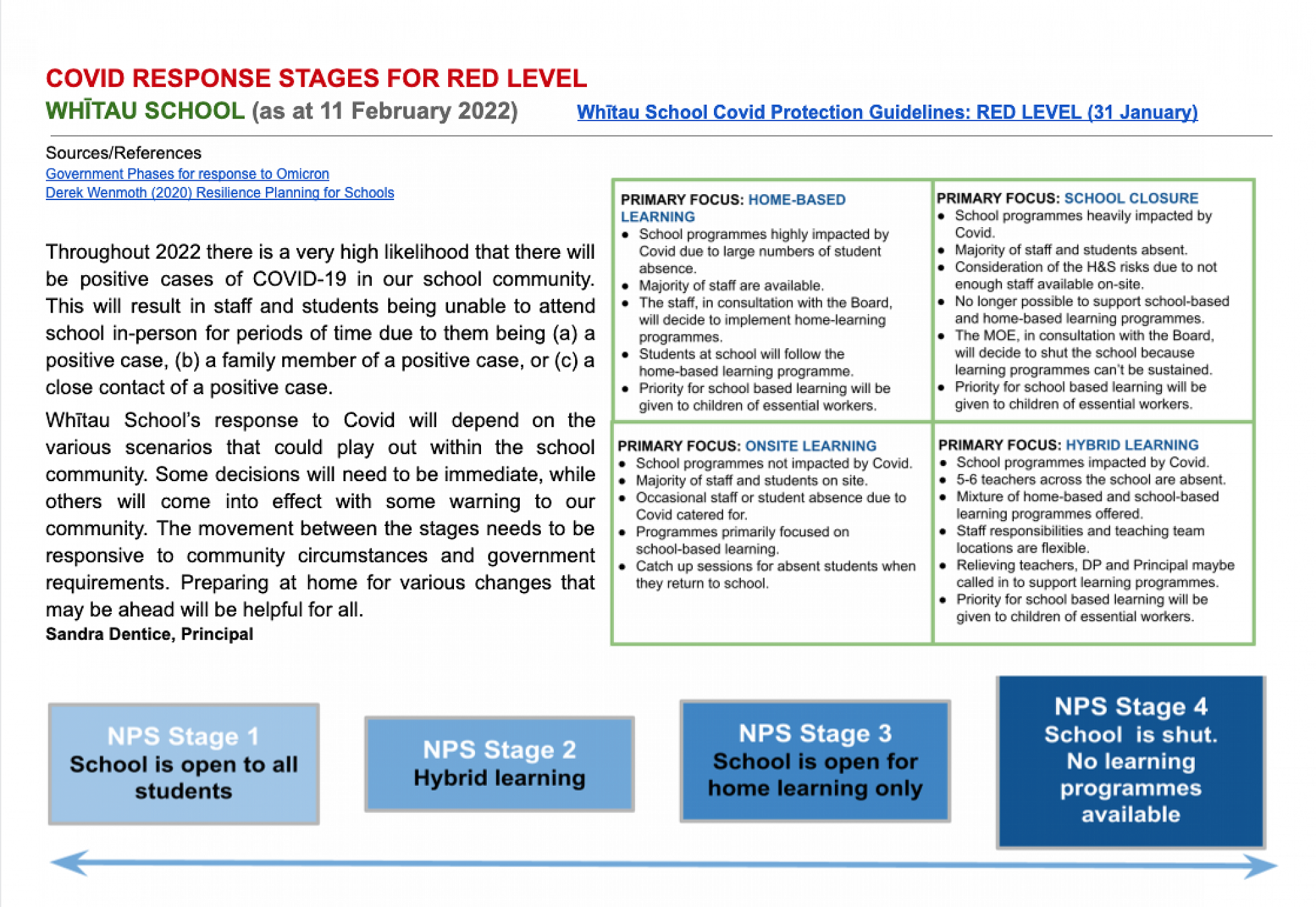 Here you will find the latest COVID information and our Whītau School Planning for the Red Traffic light of the Covid Protection Framework.
