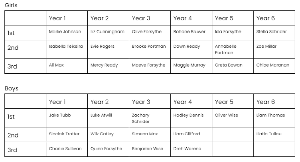 From these results the older children selected to compete in the South Canterbury Cross Country on 13 June are, Isla Forsythe, Annabelle Portman, Greta Bowan, Neve Johnson, Stella Schrider, Oliver Wise, Liam Thomas, Laitia Tuilau and Rylan Hopkinson.