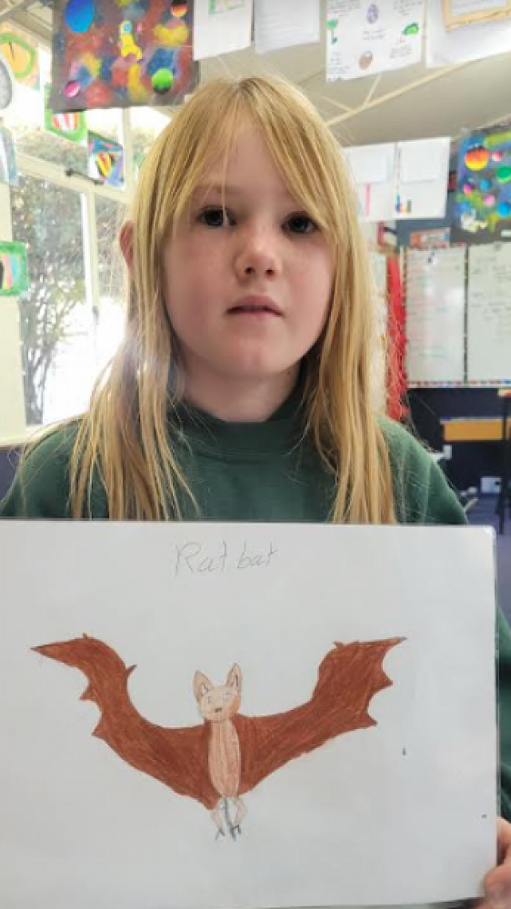 Karaka children started asking questions about animals after they researched all the different animals that had been to space. This started a journey of studying weird and wild animals and mythological creatures. They have been doing a file of facts about dragons, minibeasts and combining different species to make their own mythological creatures. Here is Skyla’s combination of a rat and bat.