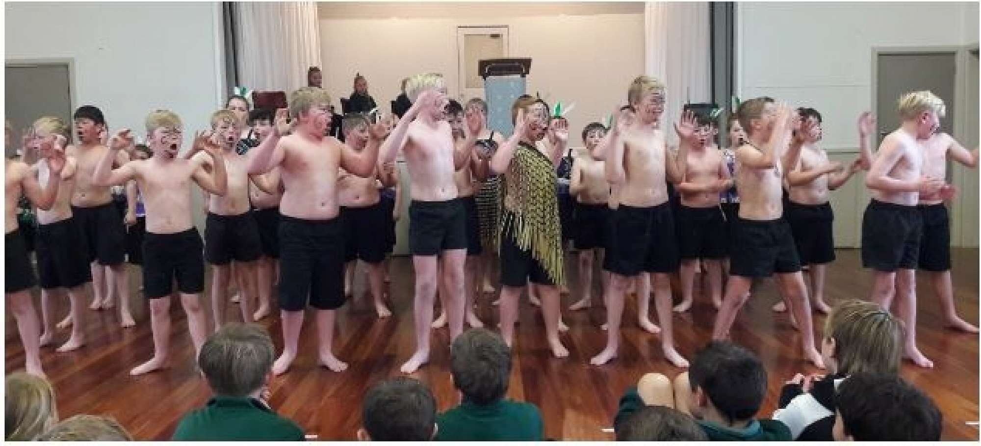 If you were able to come along to last week’s Assembly at Winchester Hall you would have seen and heard the children in our Kapa Haka group giving their debut performance. Not only do they sound strong and clear, knowing the words to the waiata and singing with gusto, they also looked pretty magnificent.