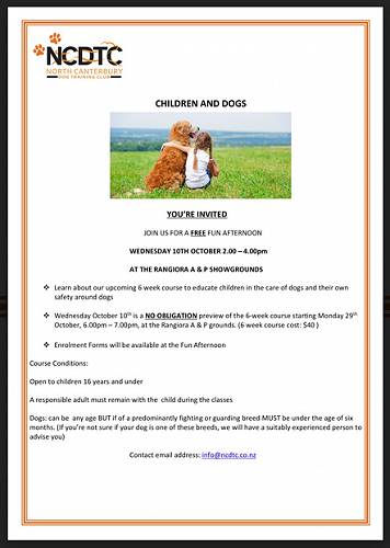 Photo by Chris Bucknell North Canterbury Dog Training Club Chris Bucknell — September 26th, 2018 Wednesday 10th October - fun free afternoon 2.00 - 4.00 pm Gallery