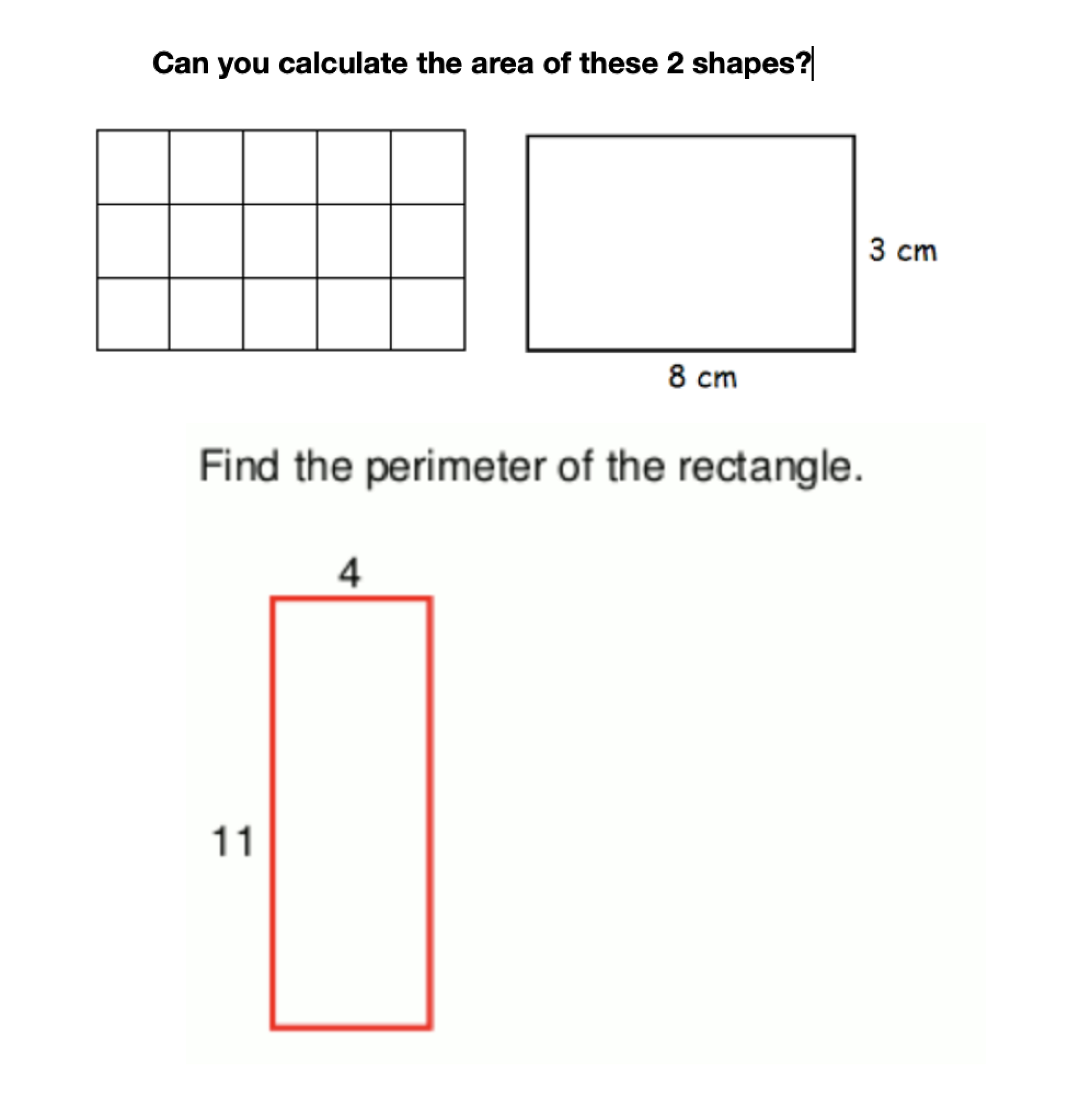 We've been working on some level 3 area and perimeter learning objectives to practice our measurement, multiplication, and addition skills.