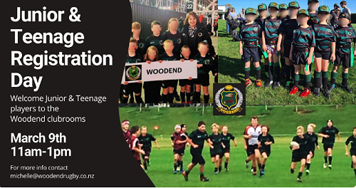 Welcome Junior and Teenage players to Woodend Rugby - For more info contact michelle@woodendrugby.co.nz