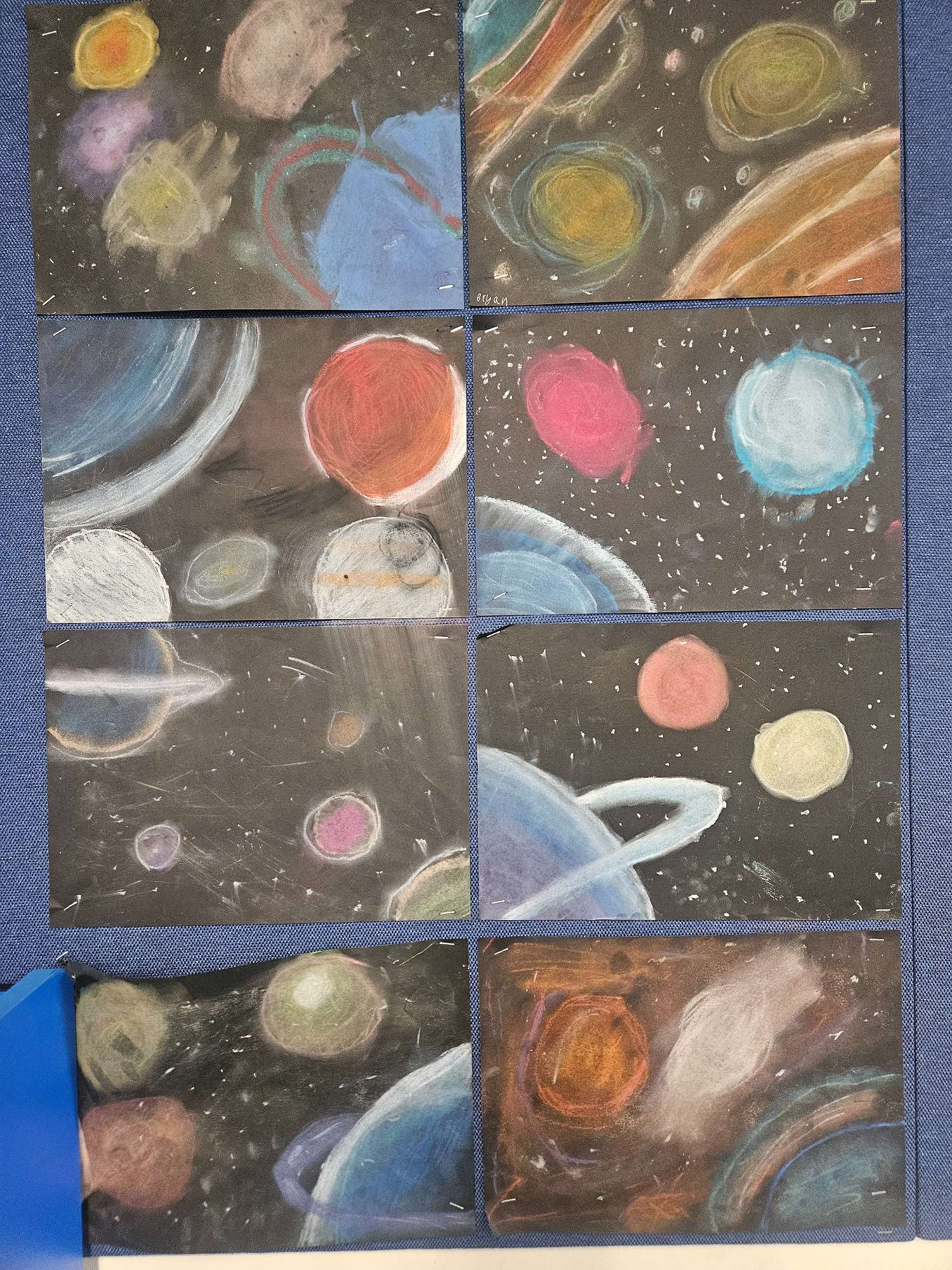 Back in week 1 it was ‘world space week.’ In TN4 we had fun learning about different challenges that astronauts have to deal with in space where there is no gravity, such as washing their hair or brushing their teeth. We created some beautiful space themed art using pastels and blending.