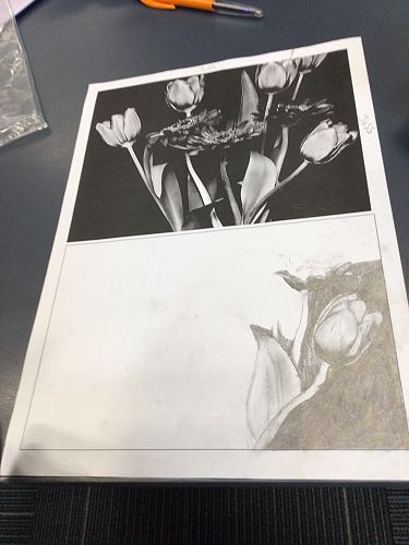 We are learning sketching techniques using 6B art pencils. This gives us the chance to explore blending, smudging, shading and really looking carefully to get our art as close to the original photo as possible. Here are some pictures of our amazing artwork.