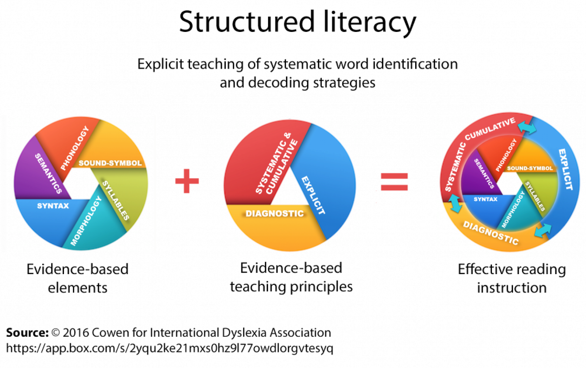 explicit, systematic, and sequential teaching of literacy at multiple levels – phonemes, letter–sound relationships, syllable patterns, morphemes, vocabulary, sentence structure, paragraph structure, and text structure