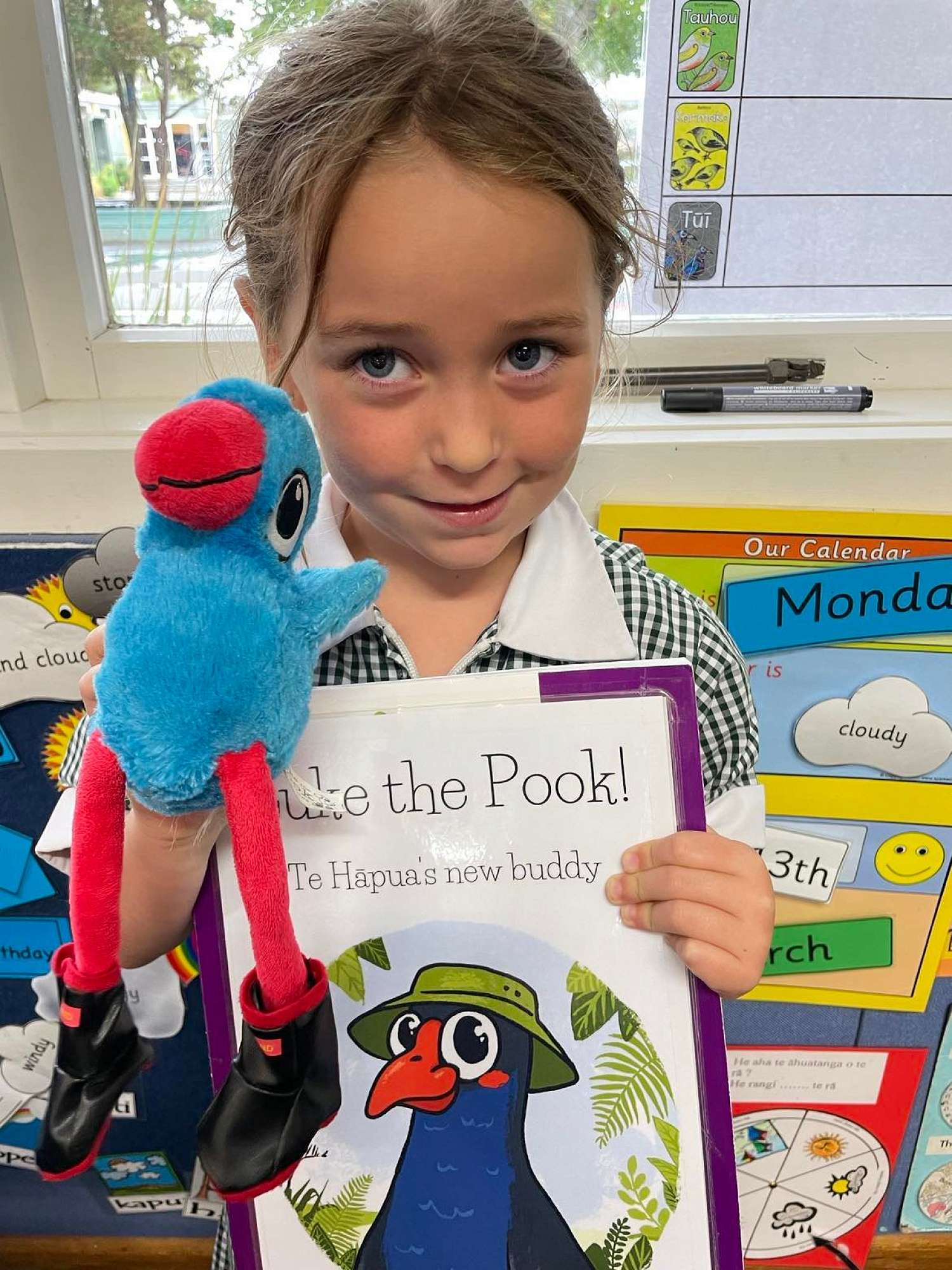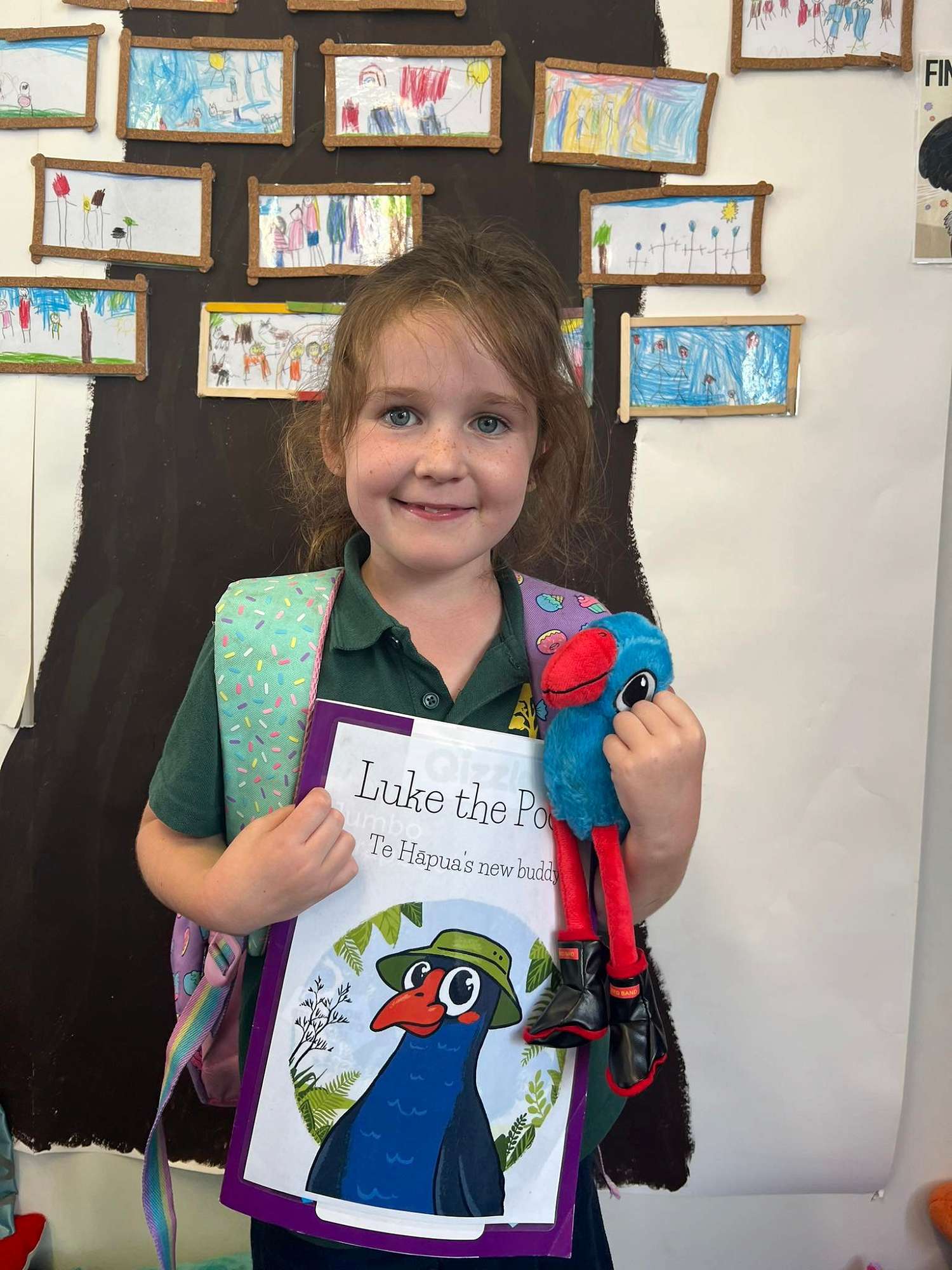Luke the Pukeko, our team mascot, lives in our learning spaces and is always looking for students showing our ō Tātou Pou which are our school values.