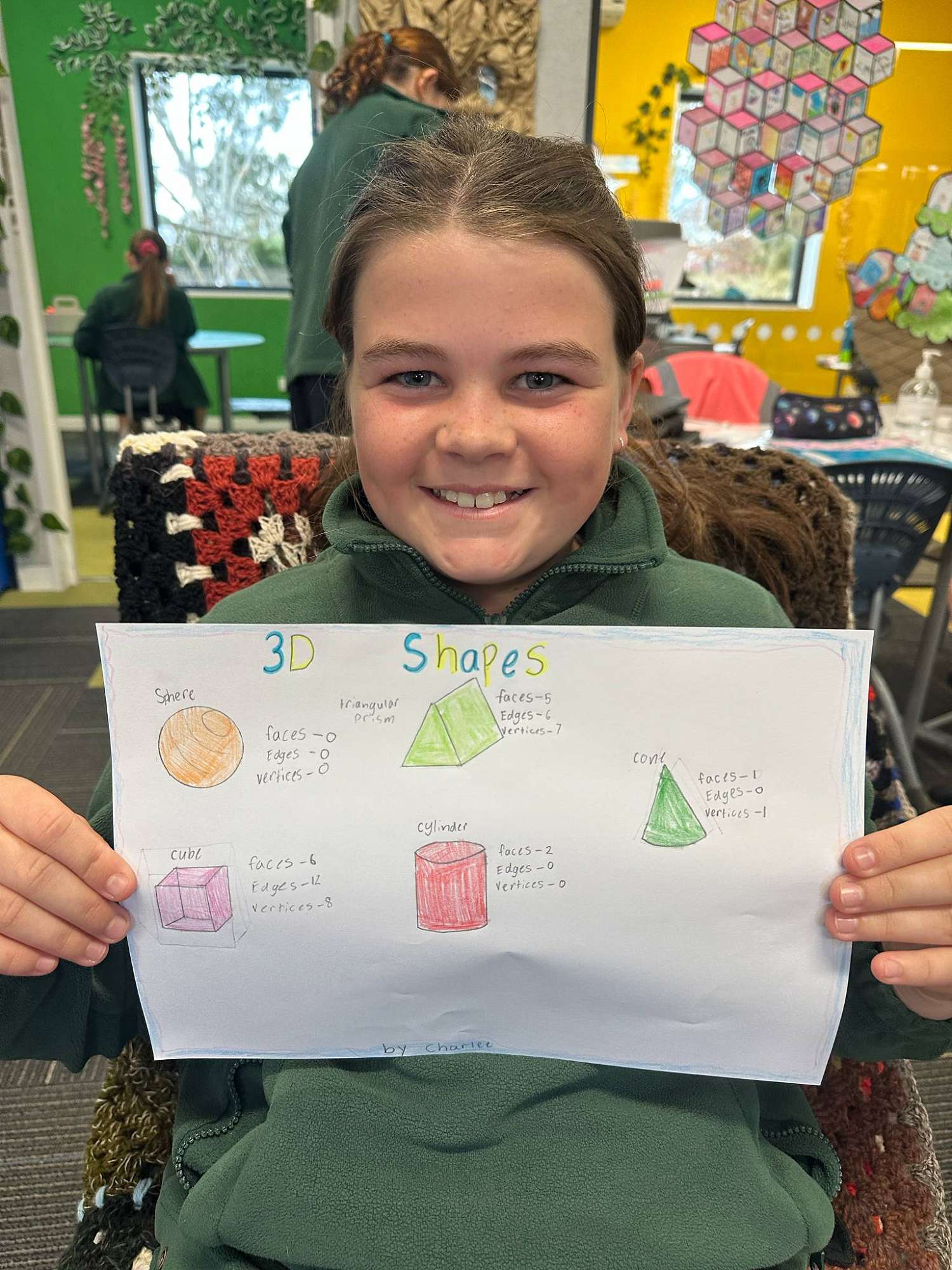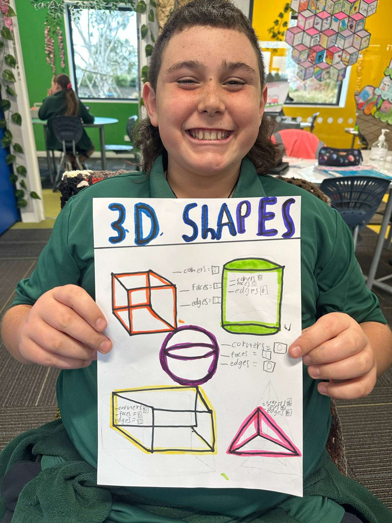 The context of our 'houses' unit was used to develop concepts such as drawing and modelling 3-dimensional objects, using coordinate systems to locate position, and use geometrical vocabulary, like edges, vertices, and surfaces. Check out some work below: