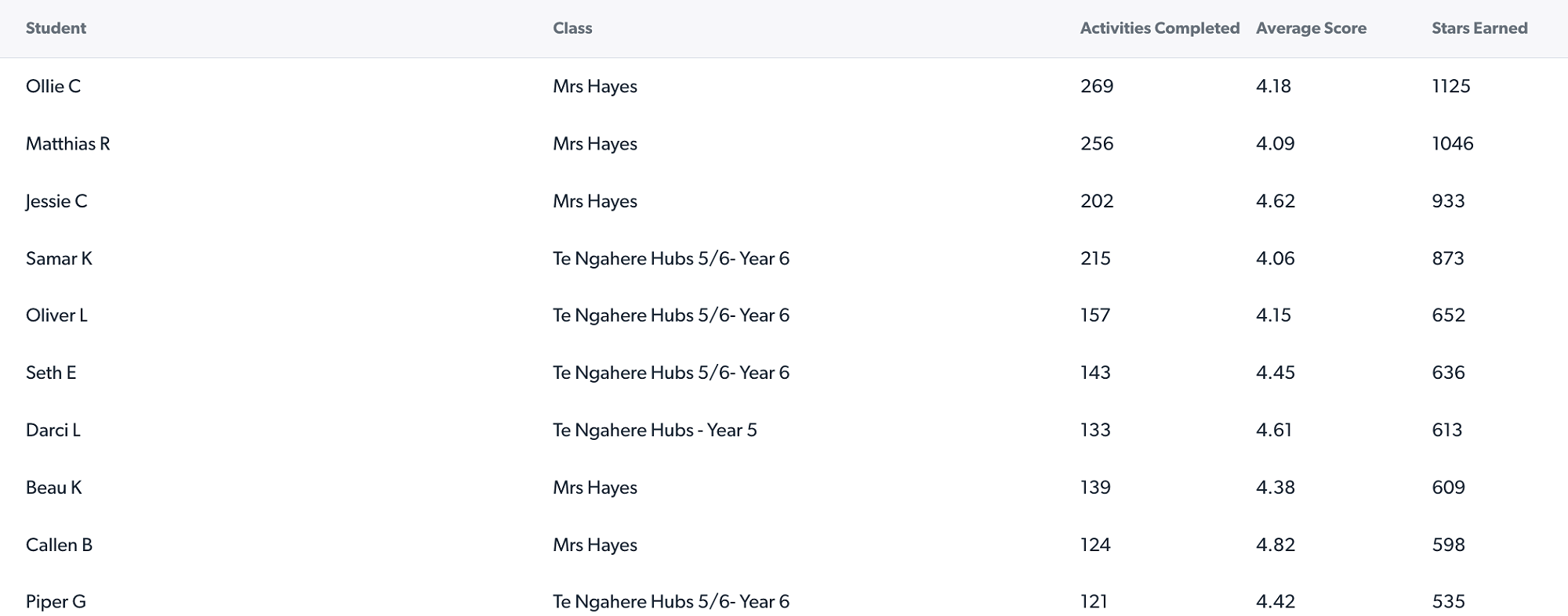 Big shout out to Mrs Hayes' class who dominate the leaderboard!