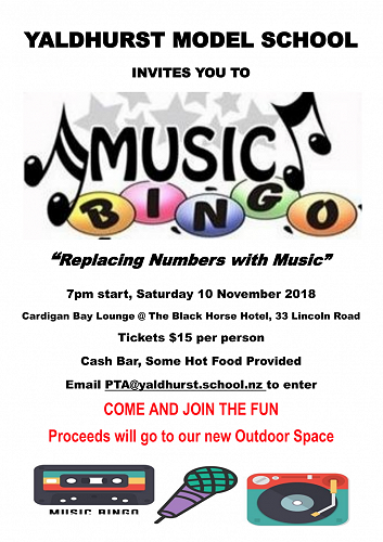 YMS PTA Music Bingo Night 7pm Saturday 10 November