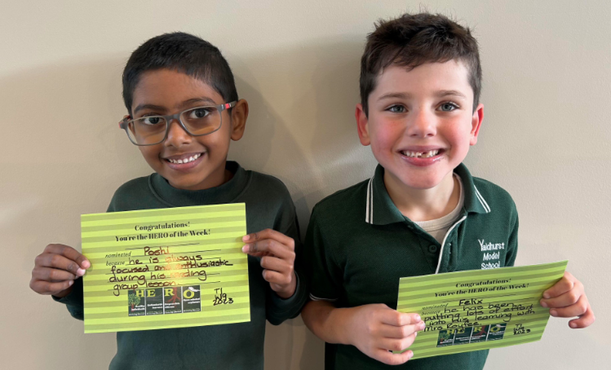 - Each class draws out names out each week to celebrate YMS Heros