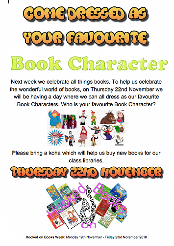 On Thursday 22nd November, to help us celebrate the wonderful world of books, we can all dress as our favourite Book Characters. Please bring a koha which will help us buy new books for our class libraries.