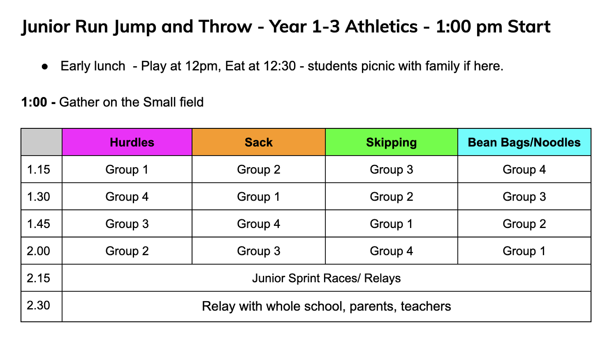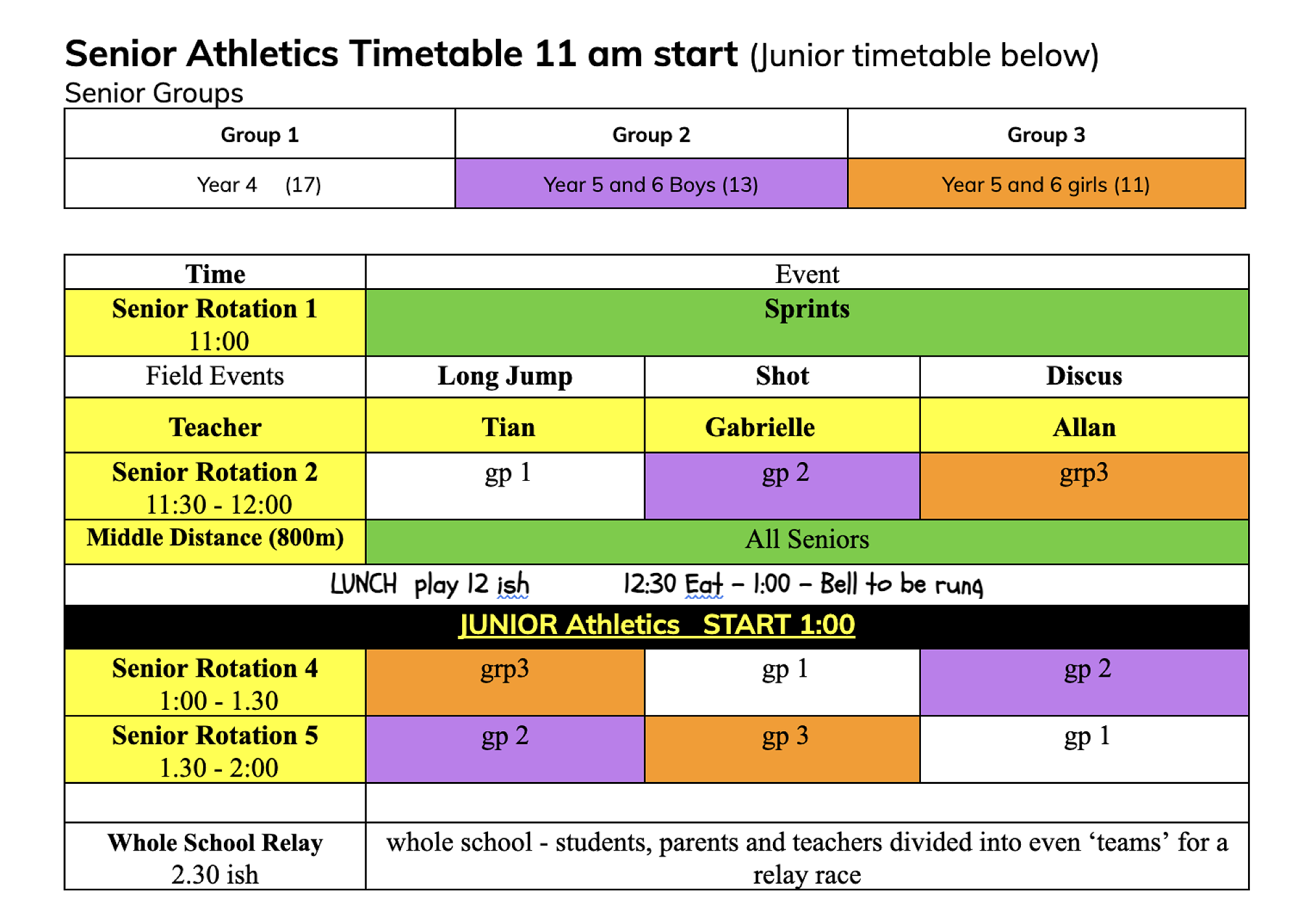 10.50 Bell rings and senior children line up IN GROUPS at the end of the court. HATS ON